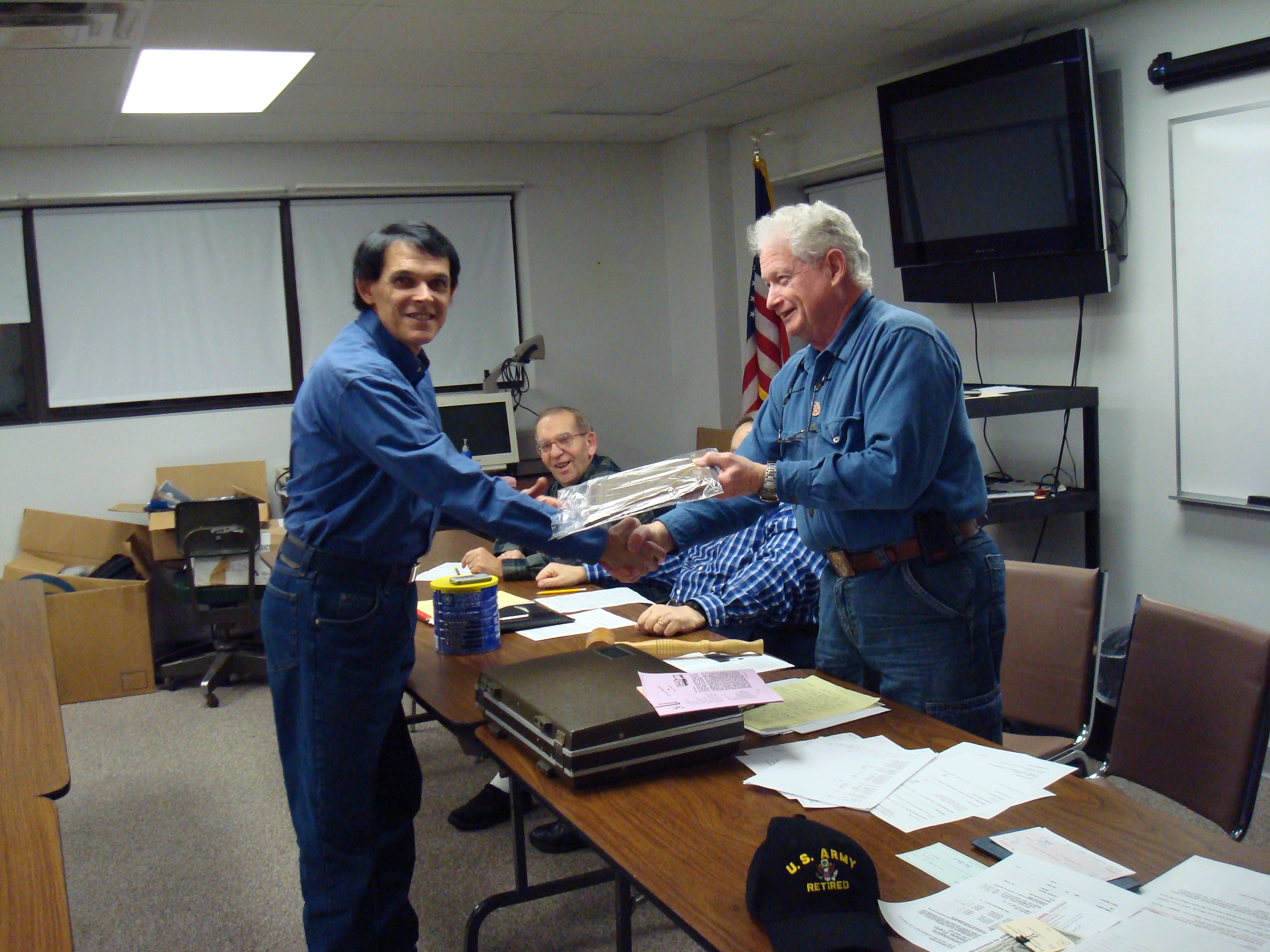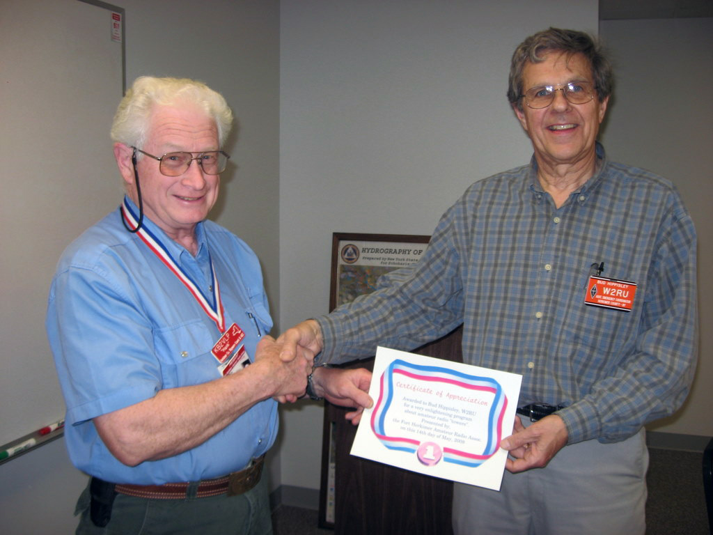 Hank KB2VLP presenting Bud W2RU with a certificate for his tower presentation 2008