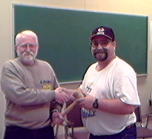 Joe KB2WII turning over the gavel to Chris KB4CMF